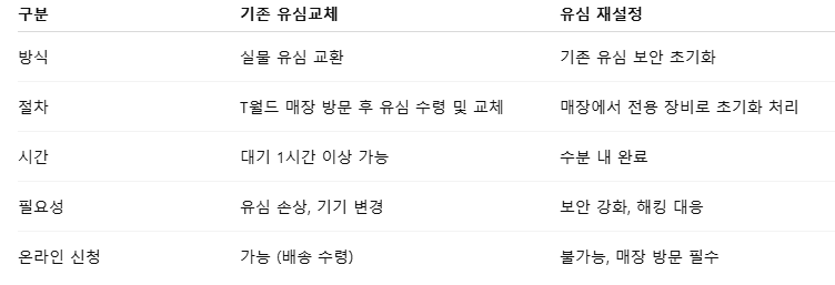 전용 인증 장비를 통해 SKT 매장에서만 처리할 수 있습니다.2. 기존 유심교체와 유심 재설정의 차이